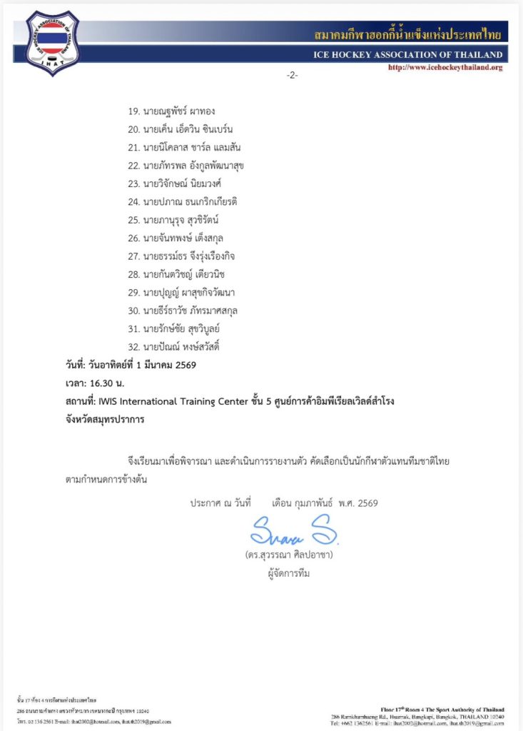 Announcement of Players Called Up for National Team Selection – 2026 IIHF Ice Hockey World Championship Division III, Group A, Cape Town, South Africa